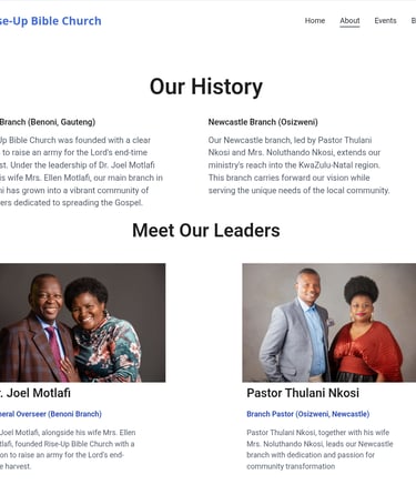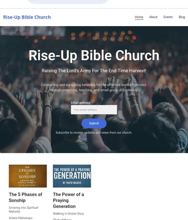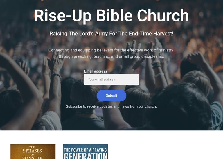 A professional Church website designed for Rise-Up Bible Church with email subscription integration.