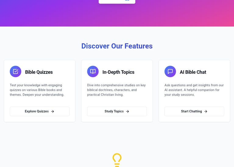 Your personal space for deeper Bible study, engaging quizzes, and insightful AI chat.